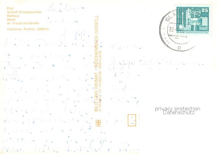 73652172 alte Postkarte Glauchau Post Schloss Hinterglauchau Rathaus Markt Dr Friedrichs Strasse postalisch gelaufen Erhaltung siehe scans [WerneD78] KatCode: 11110014173070