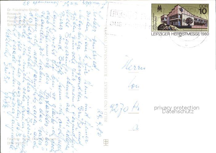 72324731 alte Postkarte Glauchau Rosarium Postamt Schloss Vorderglauchau postalisch gelaufen Erhaltung siehe scans KatCode: 11110014173070