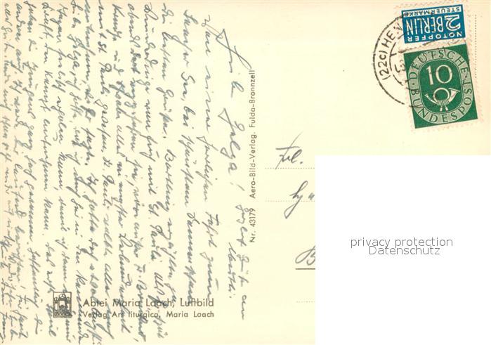73743988 alte Postkarte Glees Fliegeraufnahme Abtei Maria Laach postalisch gelaufen Erhaltung siehe scans [LiesaD40] KatCode: 11110007131205
