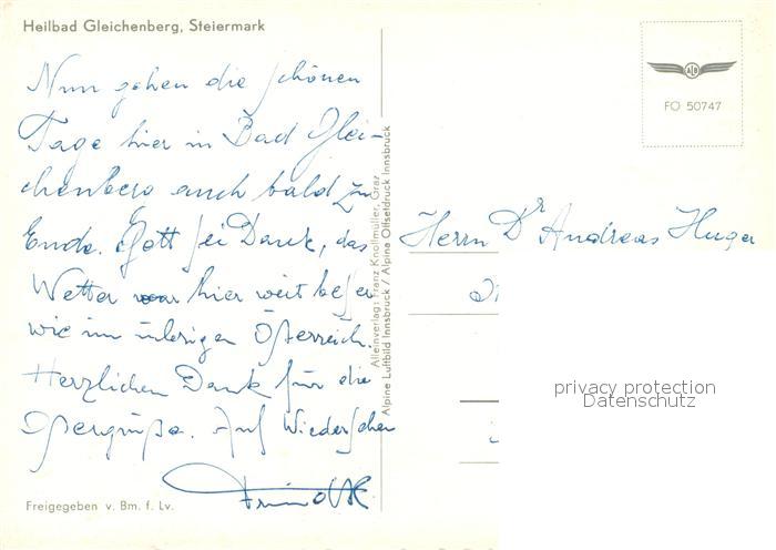 73088726 alte Postkarte Gleichenberg Bad Fliegeraufnahme postalisch gelaufen Erhaltung siehe scans [KathaD81] KatCode: 11390224060403