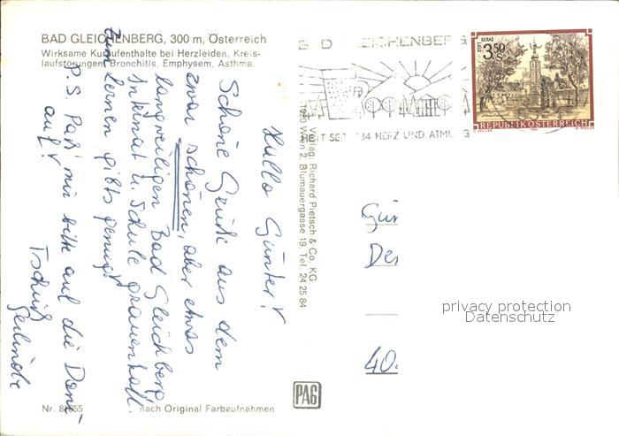 72421091 alte Postkarte Gleichenberg Bad Heilbad postalisch gelaufen Erhaltung siehe scans KatCode: 11390224060403