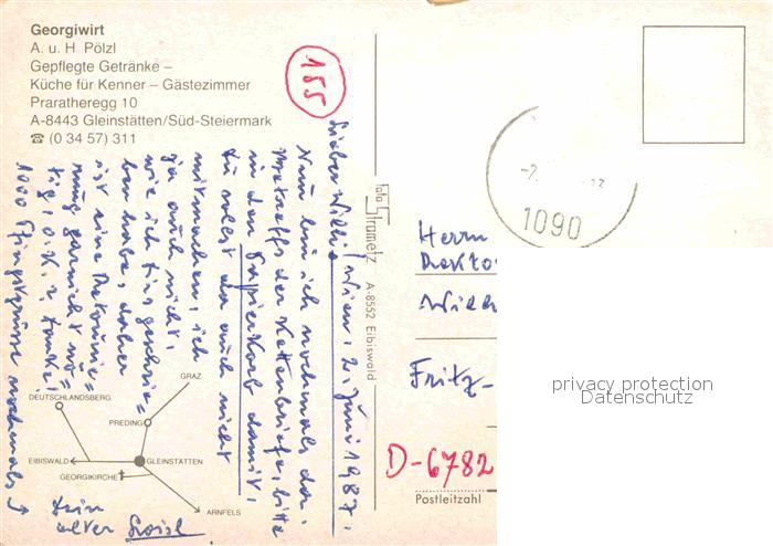 72673185 alte Postkarte Gleinstaetten Panorama Kirche Georgiwirt Gastraeume Gaestezimmer postalisch gelaufen Erhaltung siehe scans [WerneD78] KatCode: 11390225061011