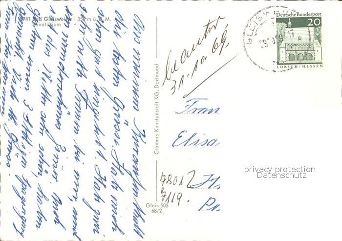 72062444 alte Postkarte Gleisweiler Sanatorium postalisch gelaufen Erhaltung siehe scans KatCode: 11110007337028