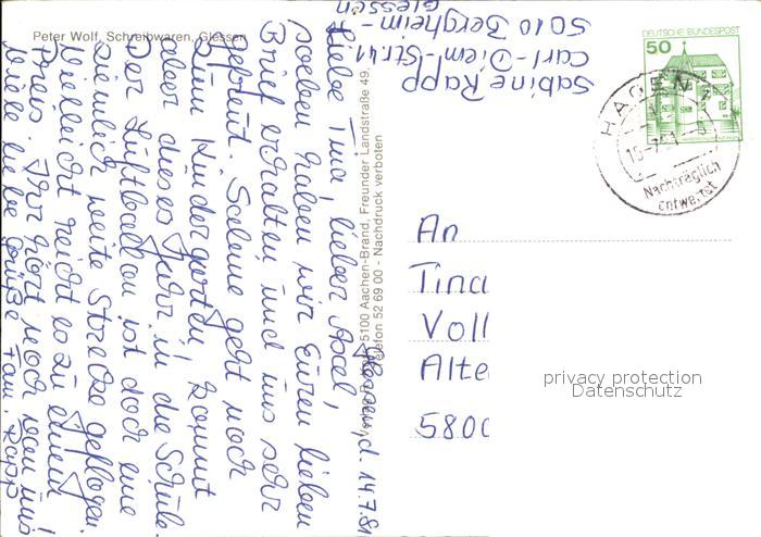 72579135 alte Postkarte Glessen Peter Wolf Schreibwaren postalisch gelaufen Erhaltung siehe scans [LiesaD40] KatCode: 11110005362008