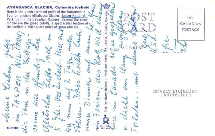 74132469 Gletscher Ferner Glacier Glaciar Ghiacciaio– Athabasca Columbia Icefield Jasper National postalisch nicht gelaufen Erhaltung siehe scans [SanaeD93] Sana Katcode 22440000000600