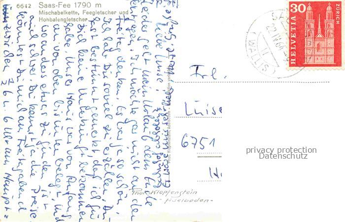 74132713 Gletscher Ferner Glacier Glaciar Ghiacciaio– Saas Fee Mischabelkette Feegletscher postalisch gelaufen Erhaltung siehe scans [SanaeD93] alte Postkarte Sana Katcode 22440000000600
