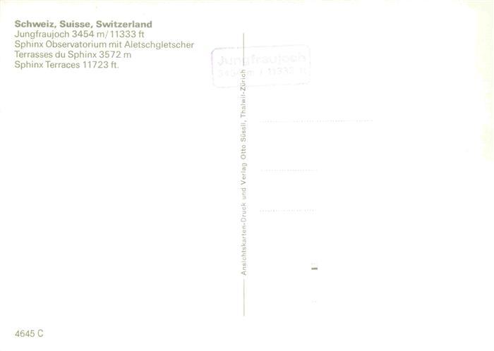 74027901 Gletscher Glacier Glaciar Ghiacciaio– Jungfraujoch Sphinx Obervatorium Schweiz postalisch nicht gelaufen Erhaltung siehe scans [SanaeD93] KatCode: 22440000000600