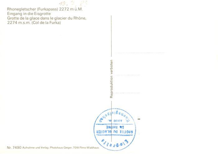 73906615 Gletscher Rhonegletscher Furkapass Eisgrotte postalisch nicht gelaufen Erhaltung siehe scans [IrynaD87] KatCode: 22440000000600
