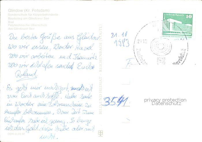 72369210 alte Postkarte Glindow Sonderschule fuer Koerperbehinderte Bootssteg am Glindower See postalisch gelaufen Erhaltung siehe scans KatCode: 11110012069656