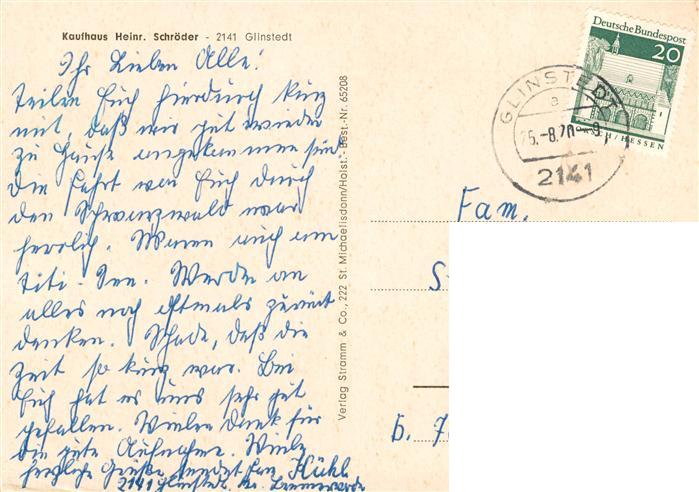 73878129 alte Postkarte Glinstedt Kaufhaus Heinrich Schroeder Kran Gedenkstaette postalisch gelaufen Erhaltung siehe scans [FriedD77] KatCode: 11110003357016