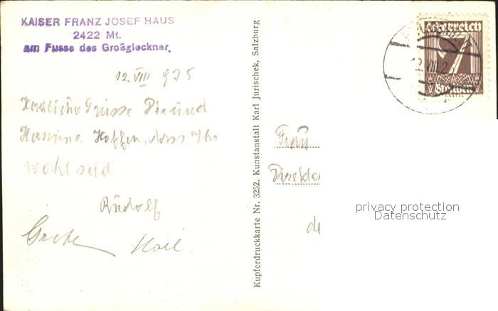 12043303 alte Postkarte Glocknerhaus Pasterze Grossglockner postalisch gelaufen Erhaltung siehe scans KatCode: 11390212020610
