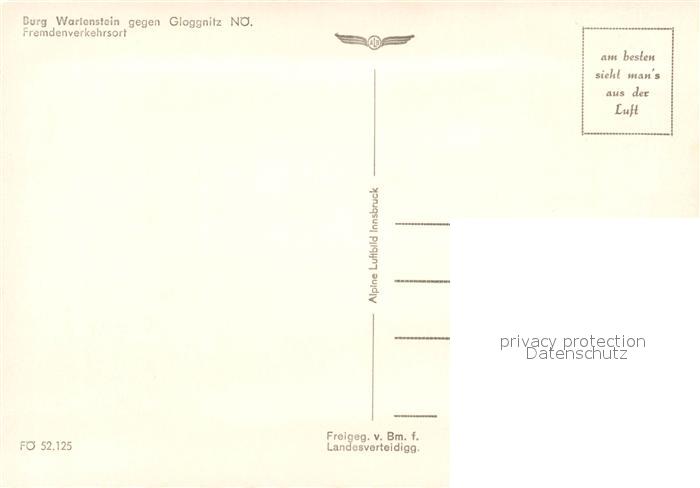 13238124 Gloggnitz Niederoesterreich Burg Wartenstein Fliegeraufnahme postalisch nicht gelaufen Erhaltung siehe scans [FriedD77] KatCode: 11390122031810