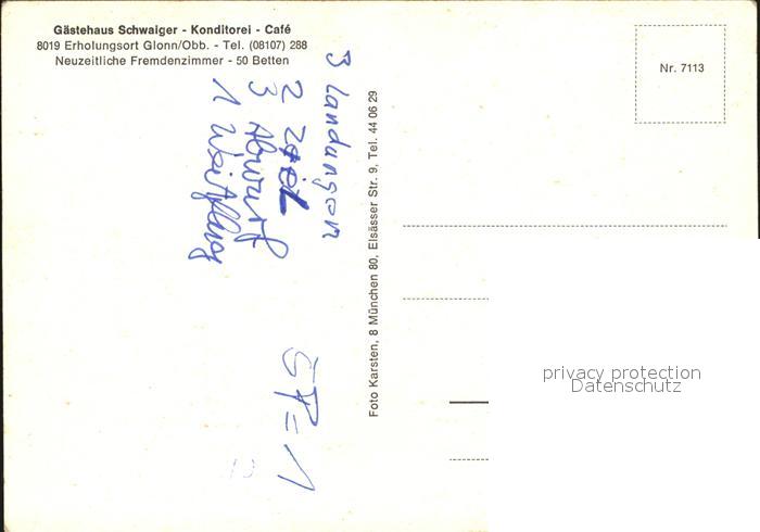 72524267 Glonn Ebersberg Gaestehaus Schwaiger Konditorei Cafe Kirche postalisch nicht gelaufen Erhaltung siehe scans KatCode: 11110009175121