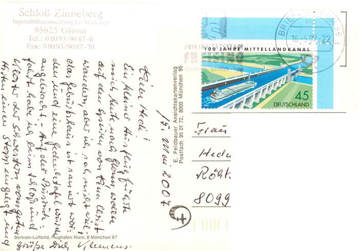 73881853 alte Postkarte Glonn Ebersberg Schloss Zinneberg Jugendhilfeeinrichtung fuer Maedchen postalisch gelaufen Fliegeraufnahme Erhaltung siehe scans [WerneD78] KatCode: 11110009175121