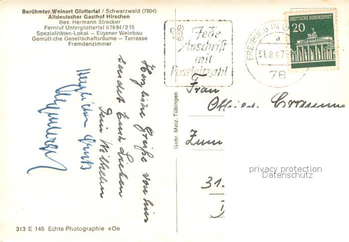 73684244 alte Postkarte Glottertal Aldeutscher Gasthof Hirschen postalisch gelaufen Erhaltung siehe scans [LiesaD40] KatCode: 11110008315041
