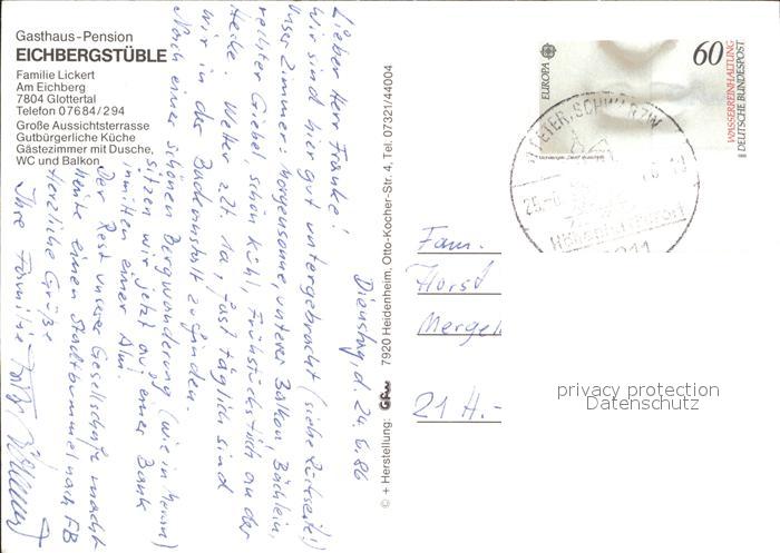 72322364 alte Postkarte Glottertal Eichbergstueble postalisch gelaufen Erhaltung siehe scans KatCode: 11110008315041