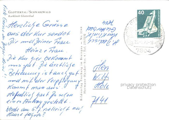 71991560 alte Postkarte Glottertal Fliegeraufnahme Kurklinik Glotterbad postalisch gelaufen KatCode: 11110008315041