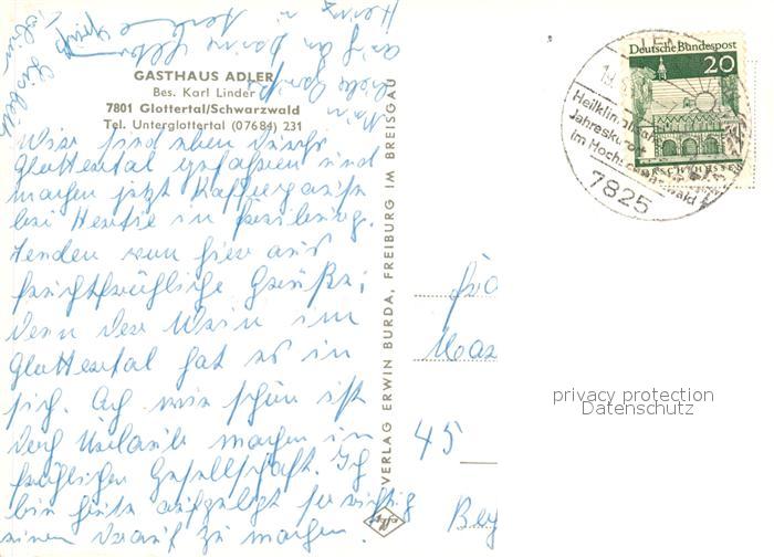73121756 alte Postkarte Glottertal Gasthaus Adler postalisch gelaufen Erhaltung siehe scans [KathaD81] KatCode: 11110008315041