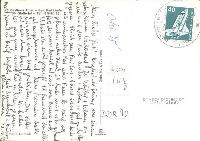 72534572 alte Postkarte Glottertal Gasthaus Adler postalisch gelaufen Erhaltung siehe scans [AndreD76 kt121box] KatCode: 11110008315041