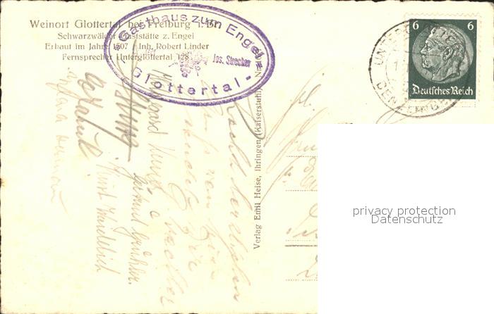 71839926 alte Postkarte Glottertal Gasthaus zum Engel postalisch gelaufen Erhaltung siehe scans KatCode: 11110008315041