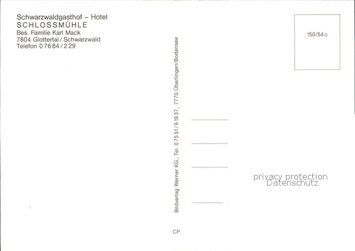 72518422 Glottertal Hotel Schwarzwaldgasthof Schlossmuehle postalisch nicht gelaufen Erhaltung siehe scans KatCode: 11110008315041