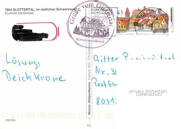 72619353 alte Postkarte Glottertal Kurklinik Glotterbad postalisch gelaufen Erhaltung siehe scans [FriedD77] KatCode: 11110008315041