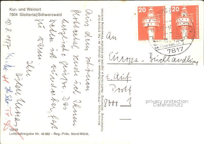 72263150 alte Postkarte Glottertal Kurort Weinort Kandel Fliegeraufnahme postalisch gelaufen Erhaltung siehe scans KatCode: 11110008315041