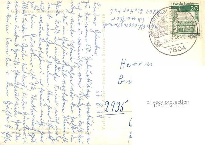 72899564 alte Postkarte Glottertal mit Blick zum Kandel Fliegeraufnahme postalisch gelaufen Erhaltung siehe scans [FriedD77] KatCode: 11110008315041