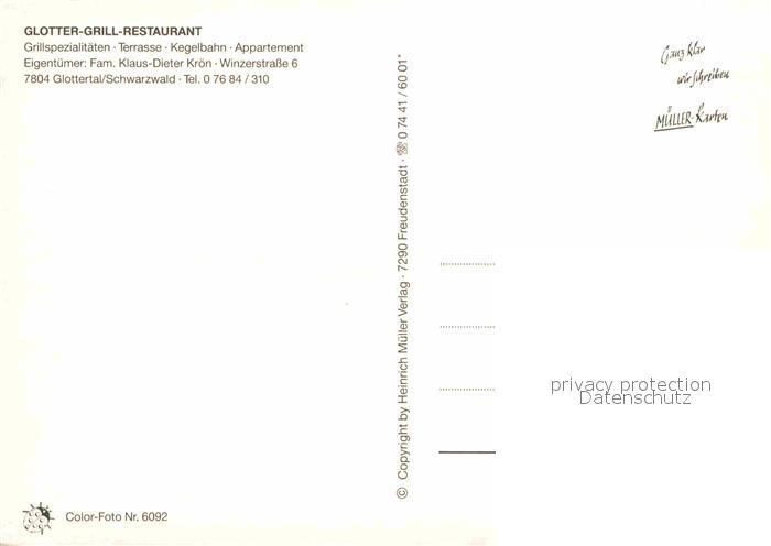 72616521 Glottertal Panorama Glotter Grill Restaurant postalisch nicht gelaufen Erhaltung siehe scans [FriedD77] KatCode: 11110008315041