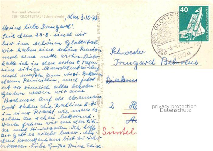 72768999 alte Postkarte Glottertal Panorama Kurort Weinort postalisch gelaufen Erhaltung siehe scans [FriedD77] KatCode: 11110008315041