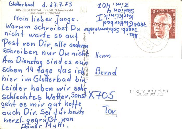 72006716 alte Postkarte Glottertal Sanatorium Glotterbad postalisch gelaufen Erhaltung siehe scans KatCode: 11110008315041