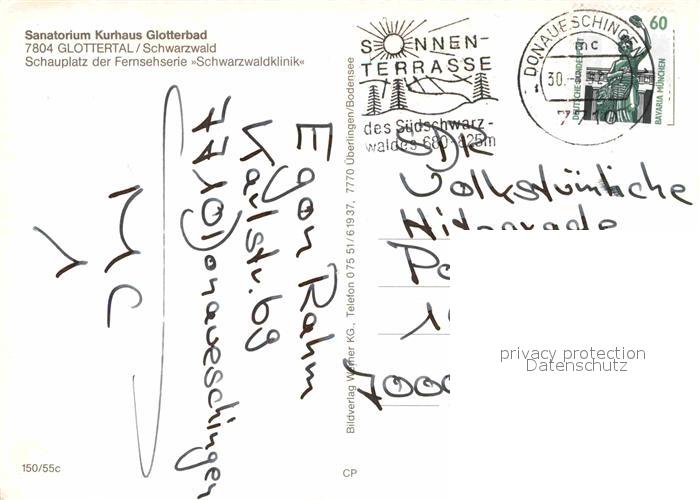 72878620 alte Postkarte Glottertal Sanatorium Kurhaus Glotterbad Schauplatz der Fernsehserie Schwarzwaldklinik postalisch gelaufen Erhaltung siehe scans [FriedD77] KatCode: 11110008315041