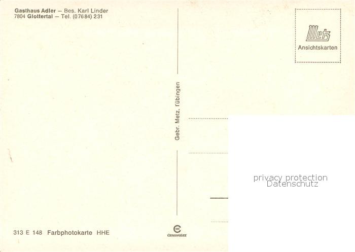 73740935 Glottertal Schwarzwald Gasthaus Adler postalisch nicht gelaufen Erhaltung siehe scans [FriedD77] KatCode: 11110008315041