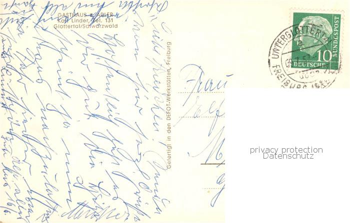 73832303 Glottertal Schwarzwald Gasthaus zum Adler postalisch gelaufen Erhaltung siehe scans [FriedD77] alte Postkarte Frie Katcode 11110008315041