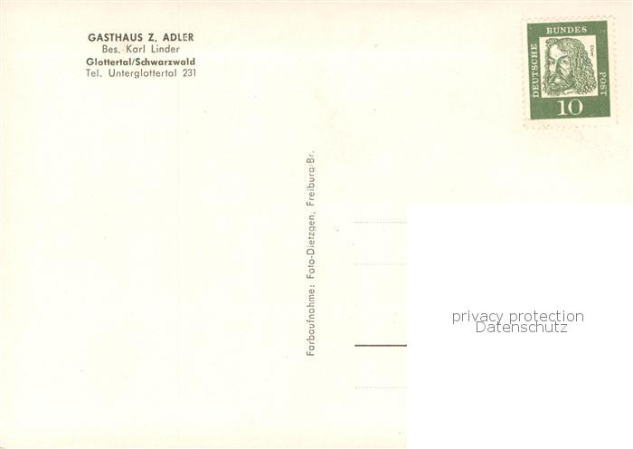 73778422 Glottertal Schwarzwald Gasthaus zum Adler postalisch nicht gelaufen Erhaltung siehe scans [WerneD78] Wern Katcode 11110008315041