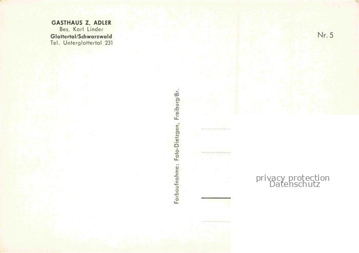 74043147 Glottertal Schwarzwald Gasthaus zum Adler postalisch nicht gelaufen Erhaltung siehe scans [WerneD78] KatCode: 11110008315041