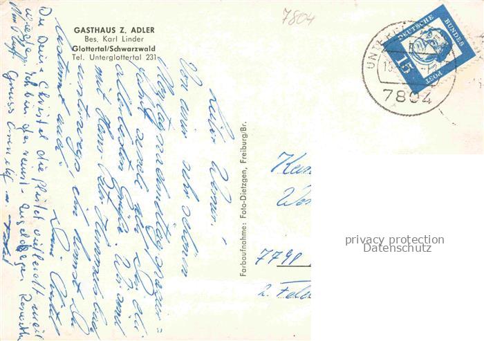 74037810 alte Postkarte Glottertal Schwarzwald Gasthaus zum Adler postalisch gelaufen Erhaltung siehe scans [WerneD78] KatCode: 11110008315041