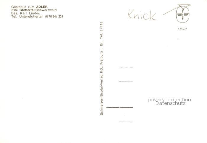 73836530 Glottertal Schwarzwald Gasthaus zum Adler postalisch nicht gelaufen Erhaltung siehe scans [WerneD78] Wern Katcode 11110008315041