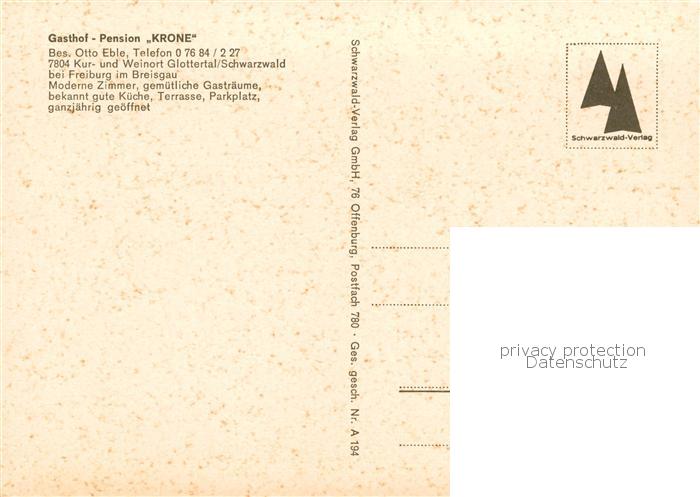 73846258 Glottertal Schwarzwald Gasthof Pension Krone postalisch nicht gelaufen Erhaltung siehe scans [WerneD78] Wern Katcode 11110008315041