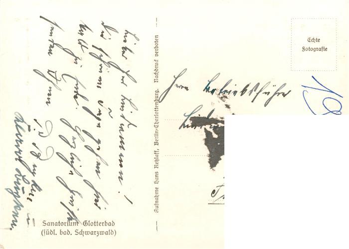 73895776 Glottertal Schwarzwald Sanatorium Glotterbad postalisch nicht gelaufen Erhaltung siehe scans [FriedD77] Frie Katcode 11110008315041