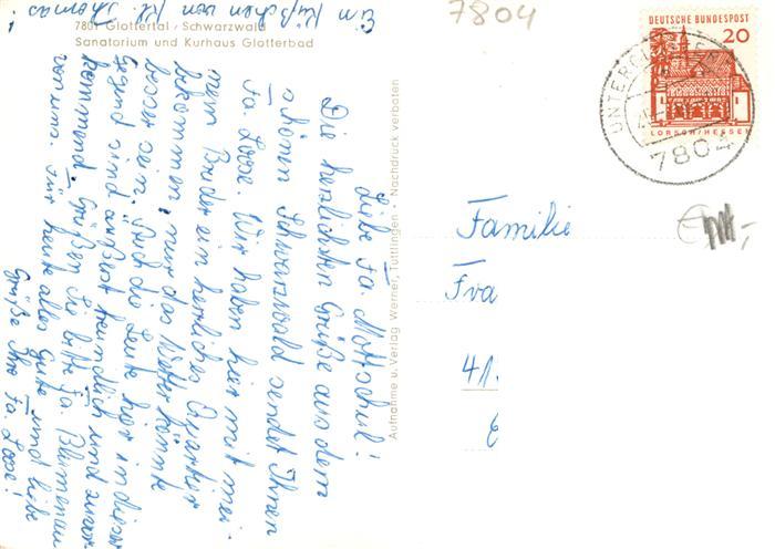 73907978 Glottertal Schwarzwald Sanatorium und Kurhaus Glotterbad postalisch gelaufen Erhaltung siehe scans [FriedD77] alte Postkarte Frie Katcode 11110008315041