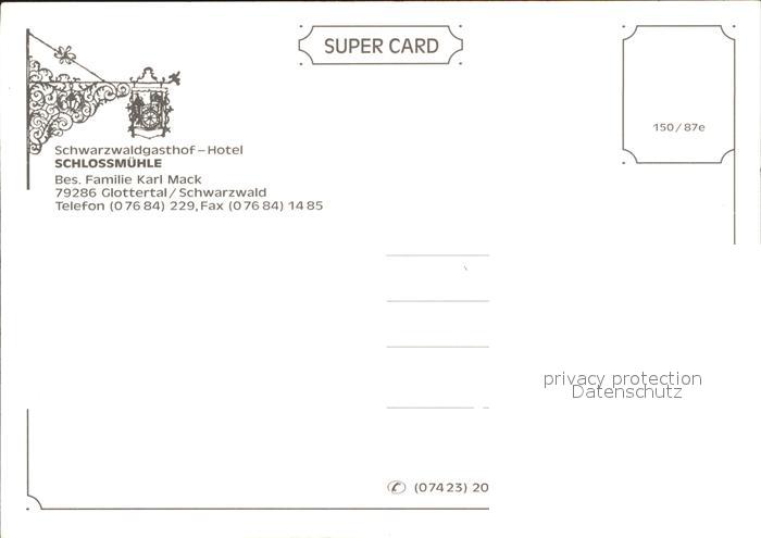 71913474 Glottertal Schwarzwaldgasthof Hotel Schlossmuehle postalisch nicht gelaufen Erhaltung siehe scans Alte Ansichtskarte Postkarte Wern Katcode 11110008315041