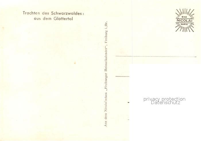 43497065 Glottertal Trachten des Schwarzwaldes postalisch nicht gelaufen Erhaltung siehe scans [LiesaD40] KatCode: 11110008315041