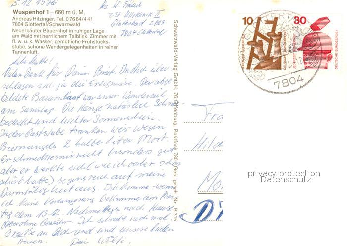 73858812 alte Postkarte Glottertal Wuspenhof Urlaub auf dem Bauernhof im Schwarzwald postalisch gelaufen Erhaltung siehe scans [FriedD77] KatCode: 11110008315041