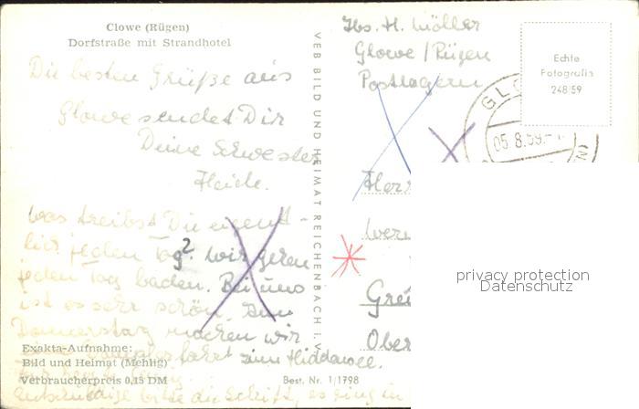 72042101 alte Postkarte Glowe Ruegen Dorfstrasse Strandhotel postalisch gelaufen KatCode: 11110013061013