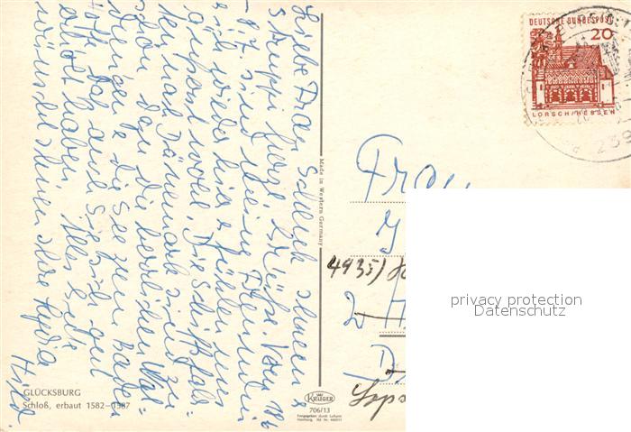 73062411 alte Postkarte Gluecksburg Nordfriesland Fliegeraufnahme Wasserschloss postalisch gelaufen Erhaltung siehe scans [KathaD81] KatCode: 11110001054014