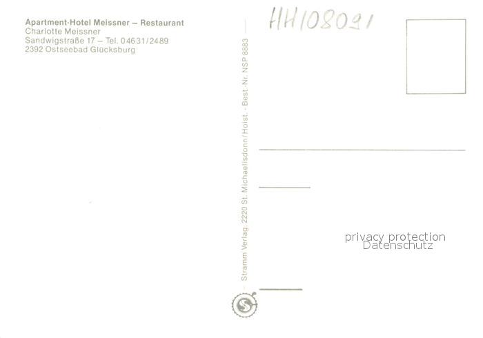 73614955 Gluecksburg Ostseebad Apartment Hotel Meisner Restaurant postalisch nicht gelaufen Erhaltung siehe scans [WerneD78] KatCode: 11110001059113