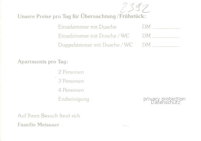 73035815 Gluecksburg Ostseebad Apartment Hotel Meissner postalisch nicht gelaufen Werbekarte (keine Postkarte) Erhaltung siehe scans [KathaD81] KatCode: 11110001059113