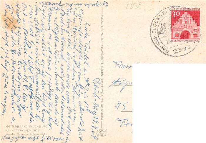 73940536 alte Postkarte Gluecksburg Ostseebad Dampfer-Anlegebruecke postalisch gelaufen Erhaltung siehe scans [FriedD77] KatCode: 11110001059113