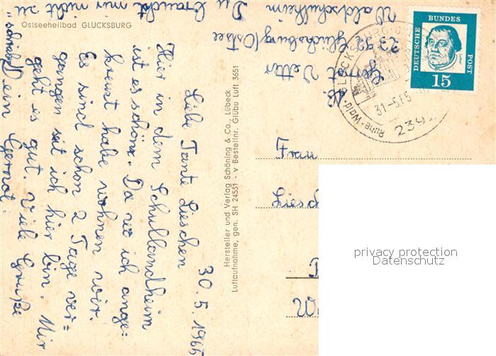 73031328 alte Postkarte Gluecksburg Ostseebad Fliegeraufnahme postalisch gelaufen Erhaltung siehe scans [KathaD81] KatCode: 11110001059113